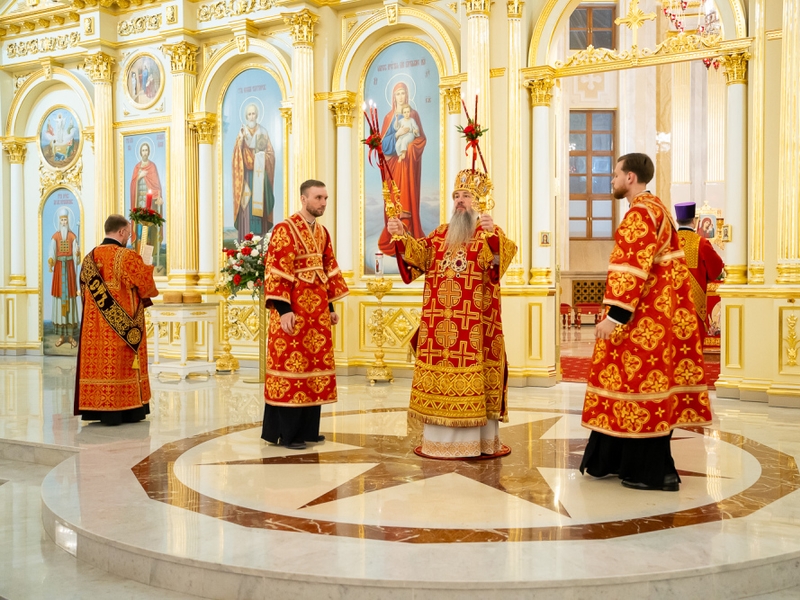 Ему сослужили ключарь Спасского кафедрального собора иерей Николай Батищев, протоиерей Владимир Ольхов, иереи Евгений Климчев, Георгий Насонов и Никита Черных, диаконы Богдан Яворский, Кирилл Вейго, Иоанн Сидоров и Олег Шештанов.