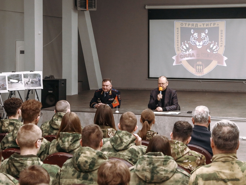 Пенза, 17 февраля 2026. PenzaNews. Губернатор Пензенской области Олег Мельниченко встретился с участниками седьмых по счету сборов отряда содействия полиции «Тигр», которые впервые имели статус международных.